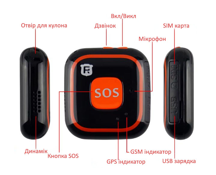Мініатюрний трекер – комбінація GPS-маячка, тривожної кнопки і телефона. Працює з сім картами всіх українських операторів.